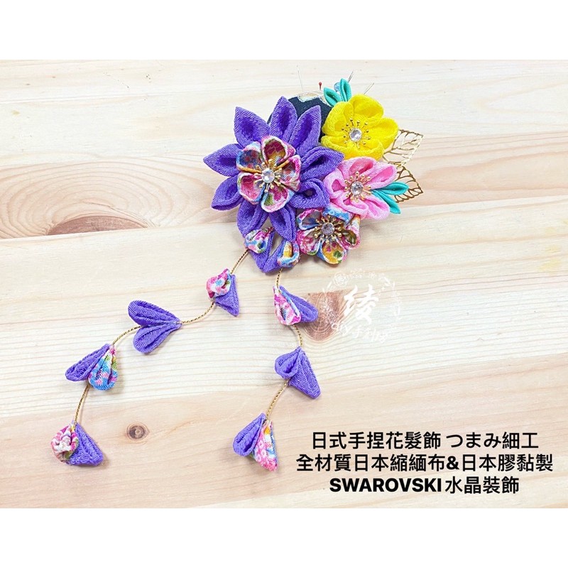 つまみ細工日式手捏花髮飾手作和風花髮飾細工花日本產縮緬布 日本膠黏製swarovski水晶裝飾 蝦皮購物